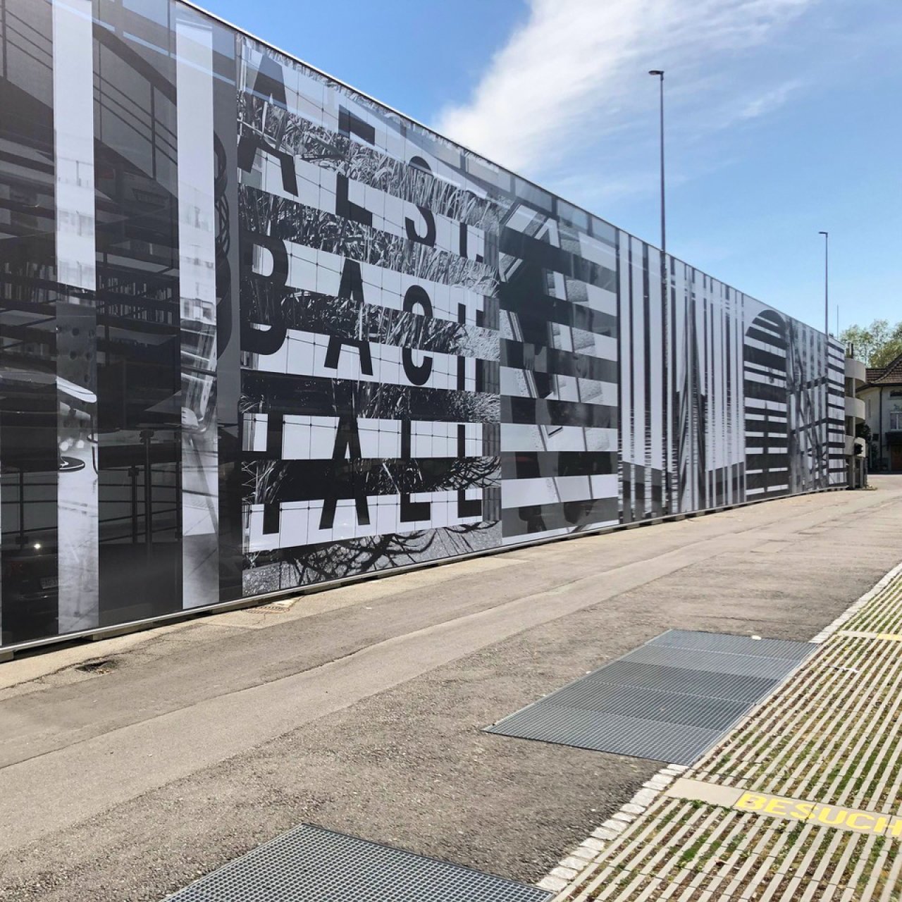 Weil aber das Quartier nichts ohne seine Umgebung, seine Stadt ist, wurden auch architektonische und Naturaufnahmen von Aarau miteinbezogen, um die gegenseitige Verbundenheit zu zeigen und die gemeinsamen Merkmale zu unterstreichen. Somit verschmelzen Vergangenheit und Gegenwart, Kunst und Gewerbe, Stadt und Quartier in einer immer neu zu entdeckenden und eigenständigen Formensprache. Die Wand wird nicht nur Schmuck, sondern bekommt durch die schwarzweisse Abstraktion auch einen eigenständigen Kunstcharakter.