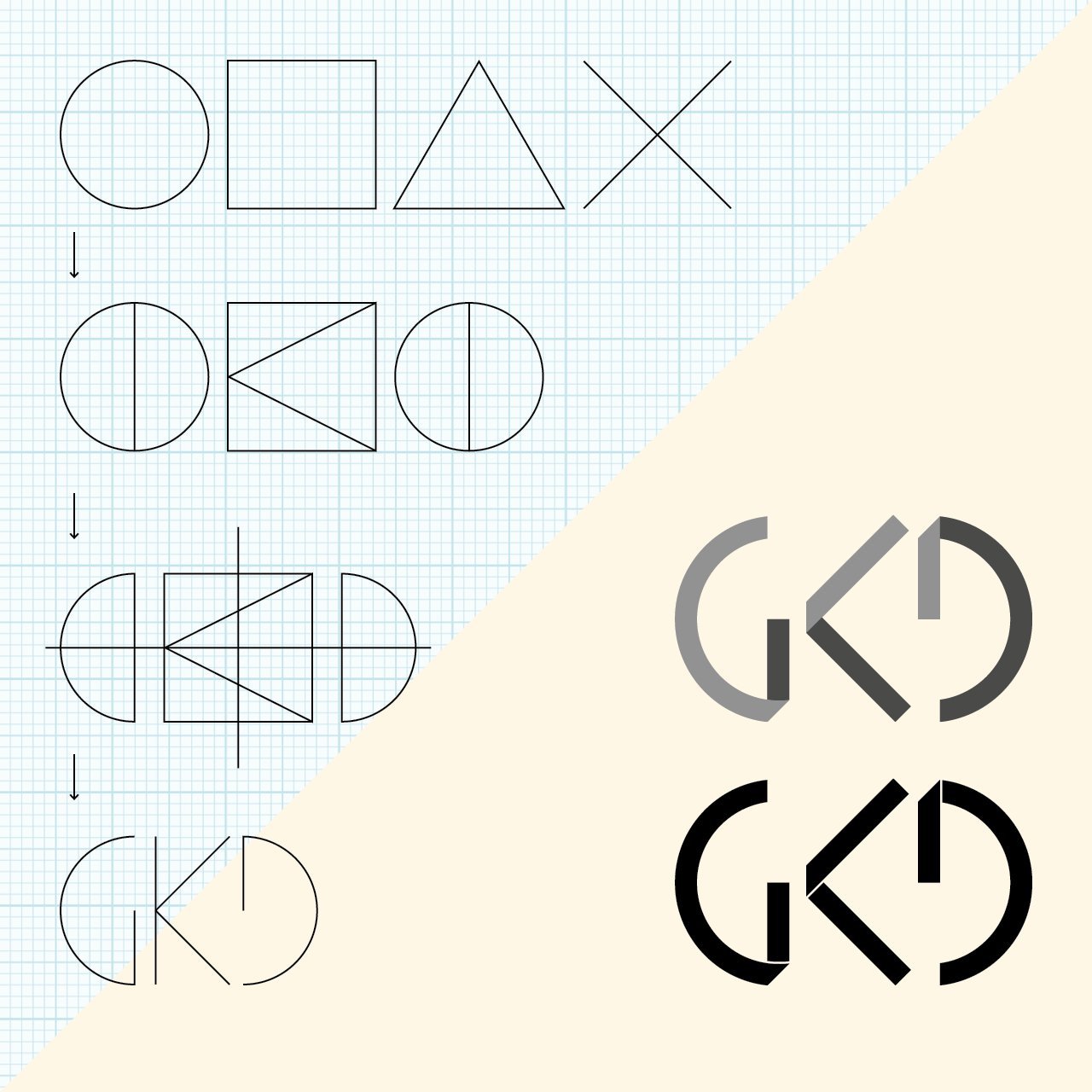 Hergeleitet ist es aus den Grundformen der Gestaltung (Kreis, Quadrat, Dreieck und Linie). Wem daraus die Buttons des Playstation Controllers bekannt vorkommen, liegt richtig – die Freude am Gestalten und am Gamen hält sich bei uns die Waage.