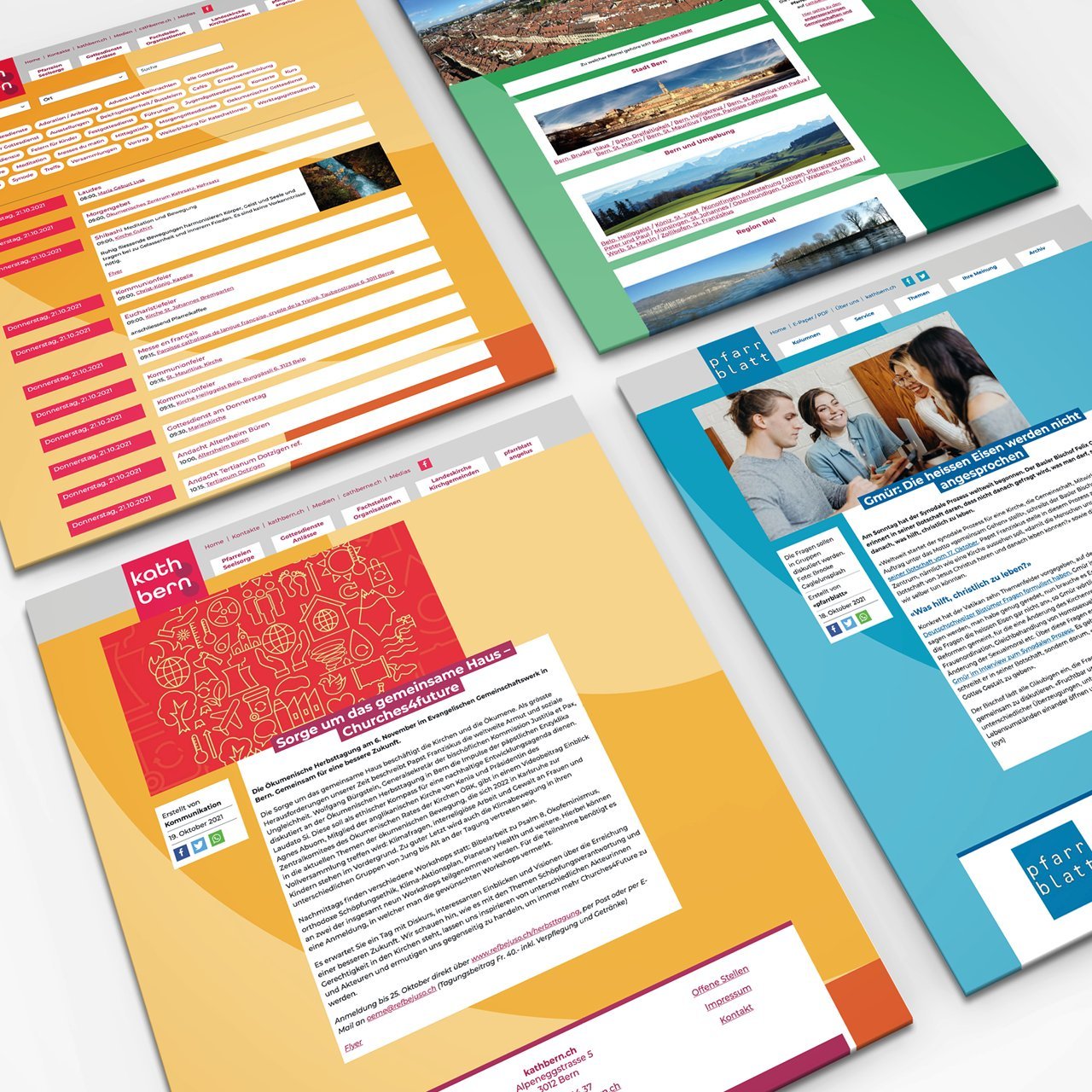 Wir durften ein Corporate Design Update inkl. der kompletten Neugestaltung der Website für die Kirche Bern und das Online Pfarrblatt Angelus umsetzen. Der umfangreiche Seitenbaum wurde maximal zusammengeführt und vereinfacht, Inhalte wurden – wo möglich – zusammengelegt.
