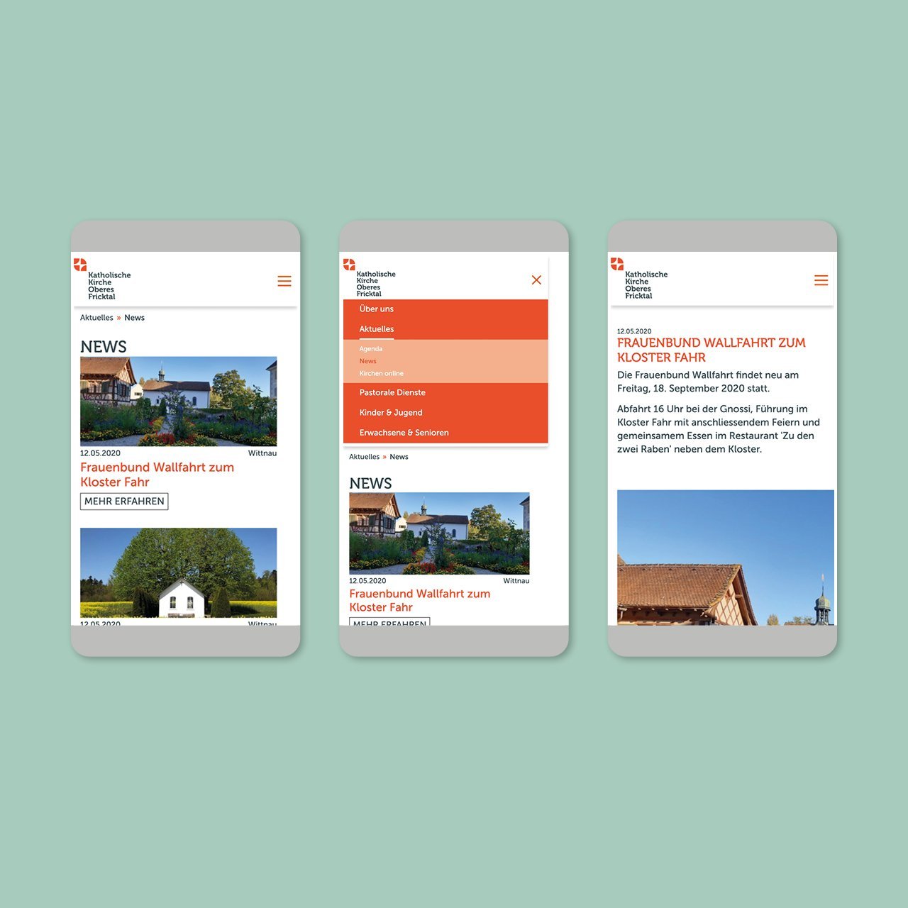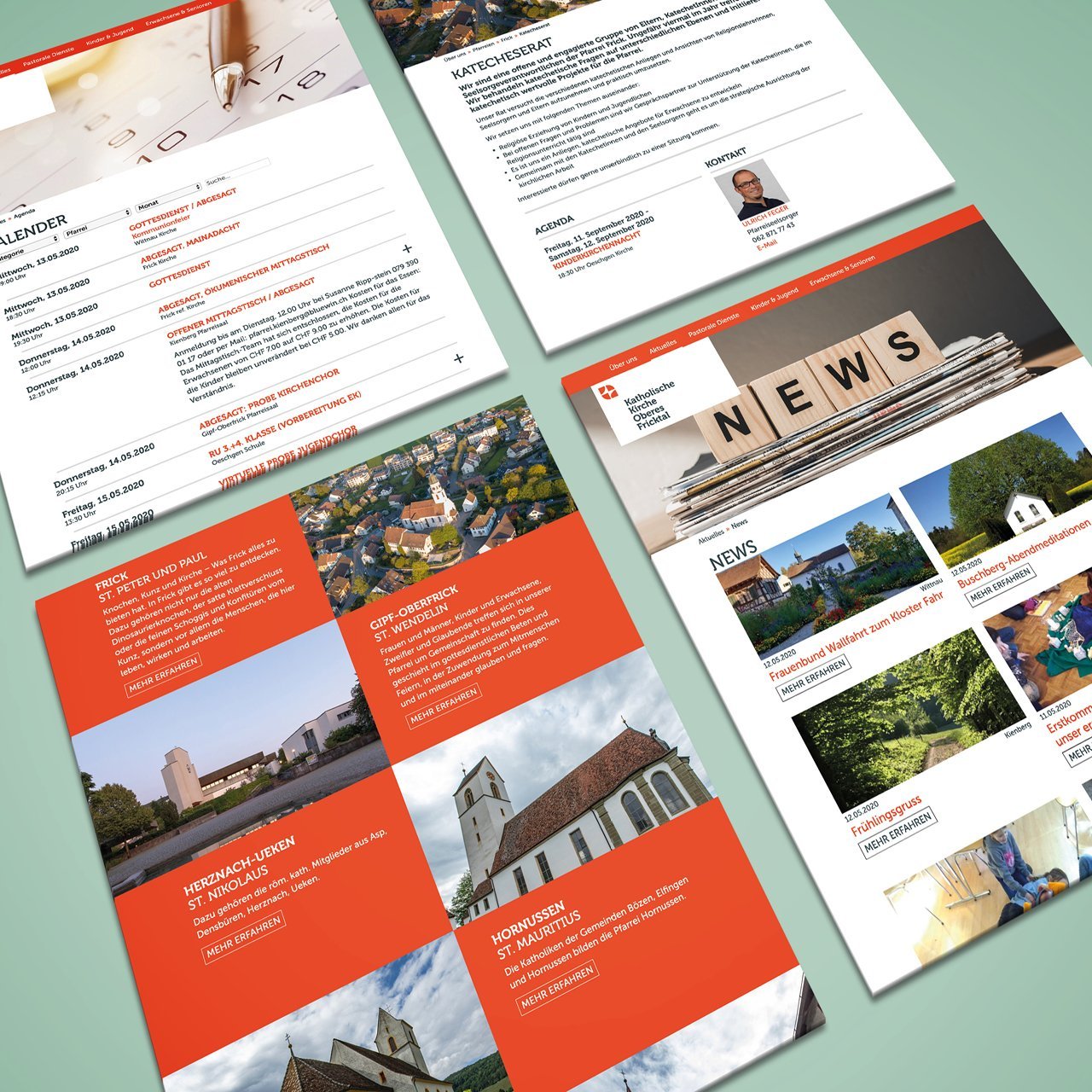 Die Website bildet in Zukunft die Basis der Kommunikation der Katholischen Kirche Oberes Fricktal. Zusammen mit dem Kunden erarbeiteten wir die Struktur der Website. Darauf basierend gestalteten wir ein klares und modernes Design. Die Website ist gemäss den wichtigsten Zugriffspunkten einfach strukturiert, damit sich die verschiedenen Zielgruppen der Katholischen Kirche Oberes Fricktal schnell und umfassend informieren können. Die Bilderwelt orientiert sich an den aktuellen Bedürfnissen und zeigt Menschen, das Zusammenleben, die Tradition und die Natur in verschiedenen Ausprägungen.