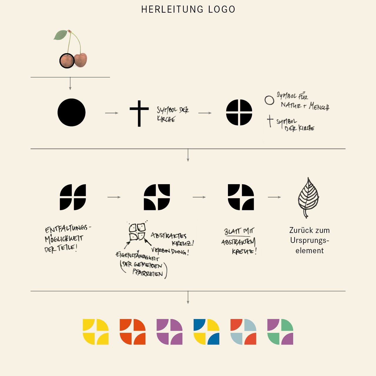 Das Corporate Design baut auf dem Gedanken Natur und Kirche (Mensch) auf. Die Basis bildet der Kreis und das Kreuz. Die daraus entstehende vierteilige Logoform (Blatt) ist lebendig und vielseitig kombinierbar. Als Primärfarbe wird ein kommunikatives Orange verwendet. Mit den Zusatzfarben werden wiederum die vier gedanklichen