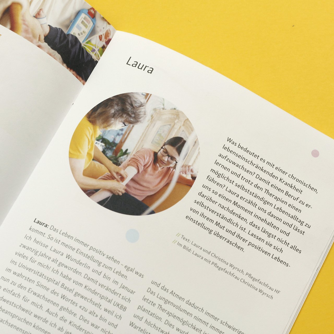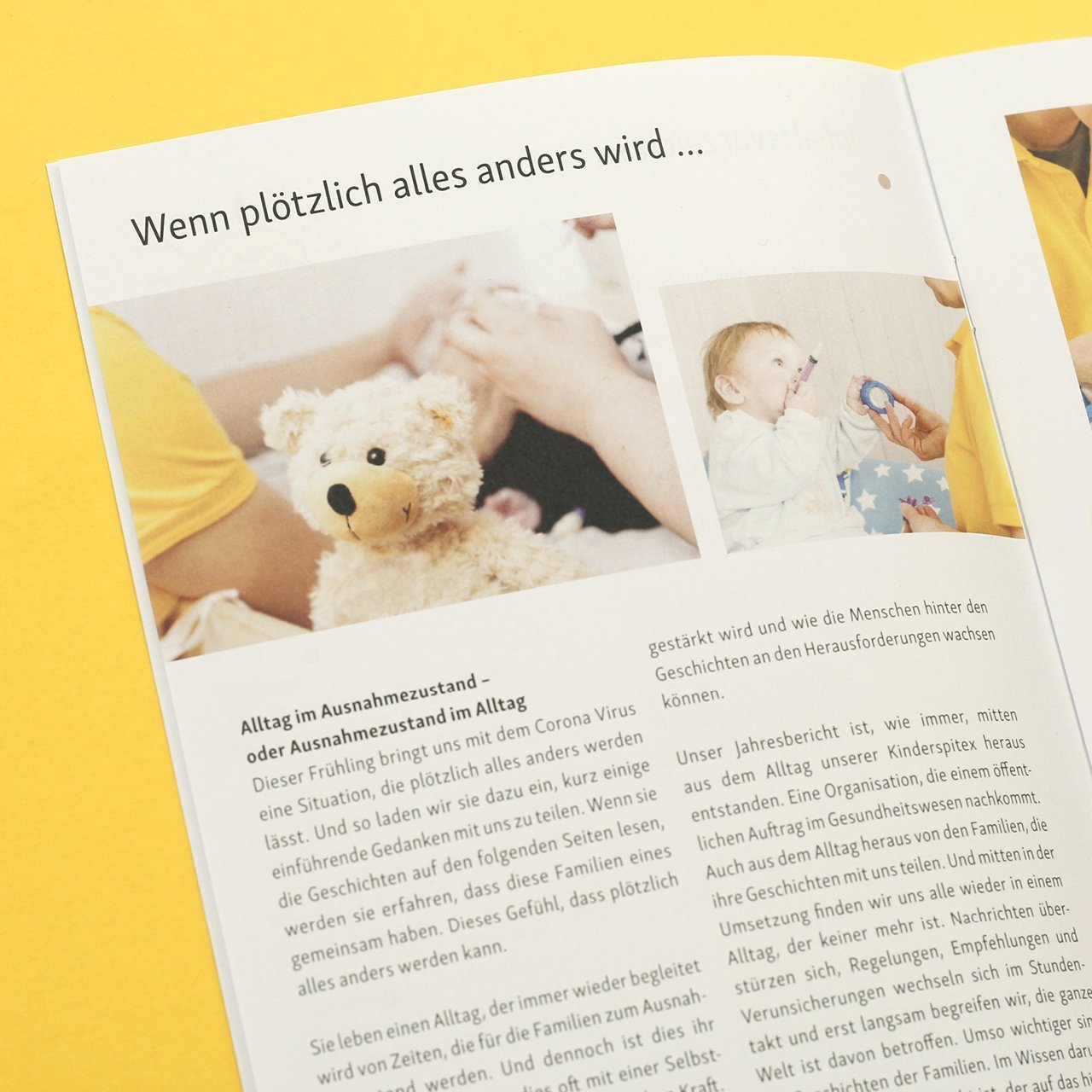Seit 2012 wird der Geschäftsbericht der Kinderspitex durch uns gestaltet. Auch dieses Jahr stehen drei emotionale Geschichten aus dem Alltag der Kinder, deren Eltern und den Spitex-Helferinnen im Vordergrund des Berichtes.