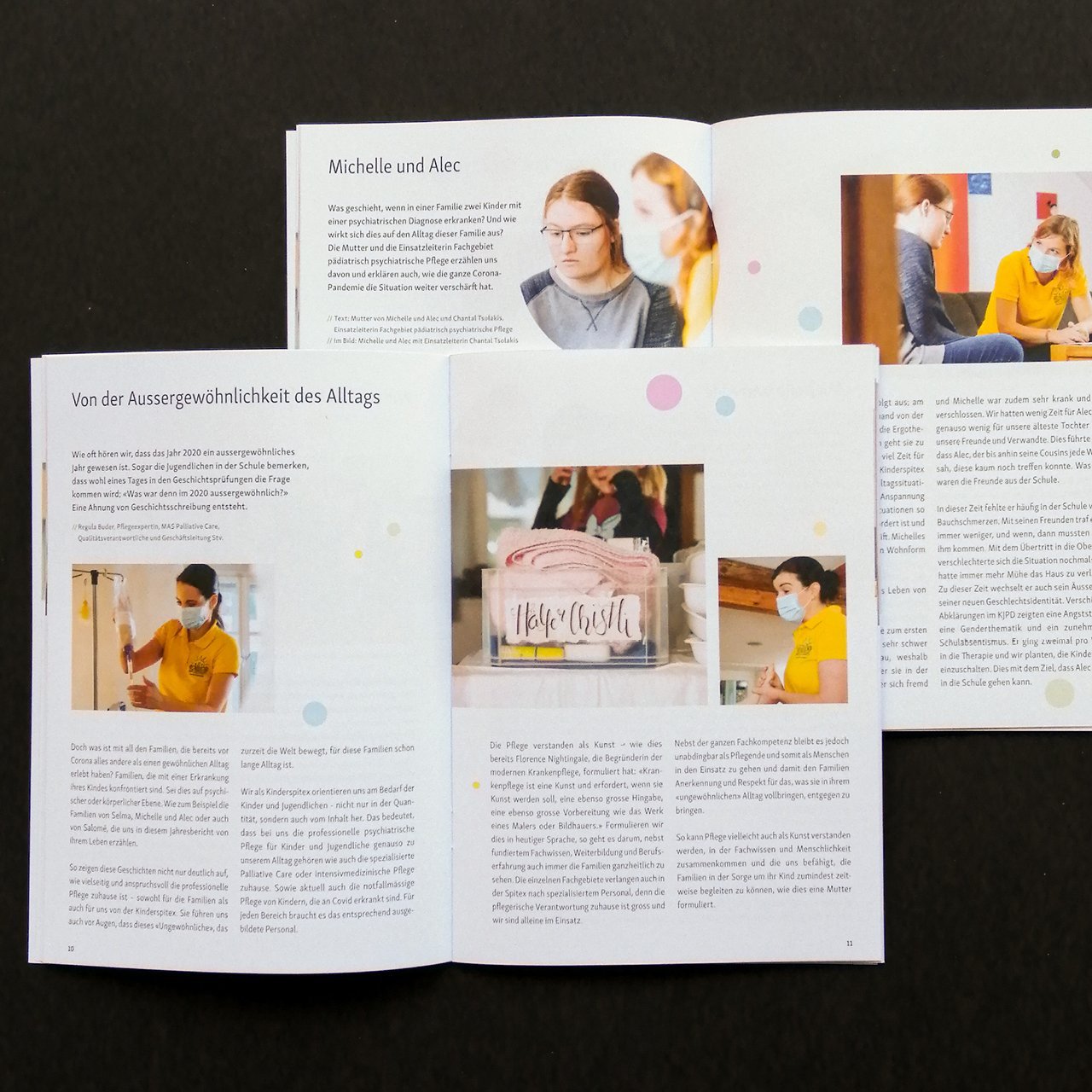 Dies ist bereits der neunte Geschäftsbericht, den wir für die Kinderspitex gestalten durften. Es war für die Kinderspitex wieder ein besonderes Jahr, weil die Covid-19 Massnahmen auf die zu pflegenden Kinder und auf deren Pflege zusätzlich Einfluss hatten. Das war nicht nur für die Kinder eine zusätzliche Beanspruchung, sondern stellte auch deren Eltern und die Pflegerinnen vor zusätzliche Herausforderungen. Im aktuellen Bericht sind wieder drei ganz individuelle Geschichten der Kinder und deren Familien zu entdecken.