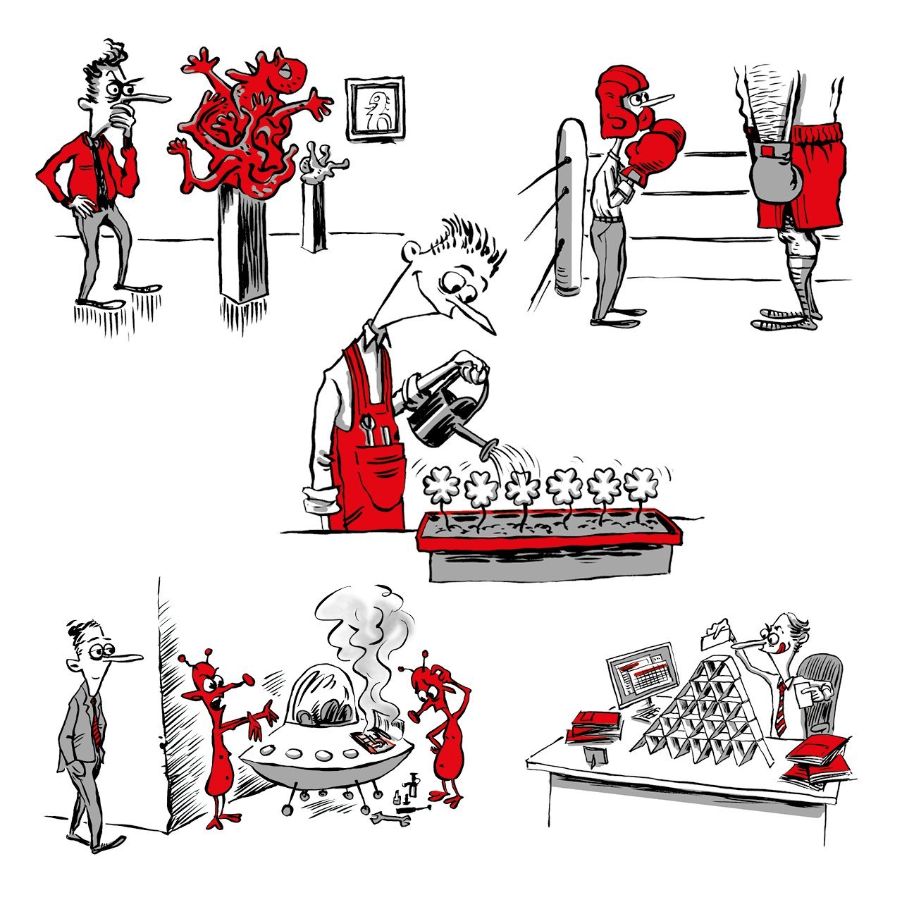- Präsentation: Sie wollen Ihre Vision oder eine Idee intern Ihren Mitarbeitenden klar und verständlich erläutern? Aufnahmen gibt es keine und Stockfotos sind zu peinlich? Dann ergänzen smarte, individualisierte Illustrationen Ihre Botschaft und die Inhalte werden besser verinnerlicht.