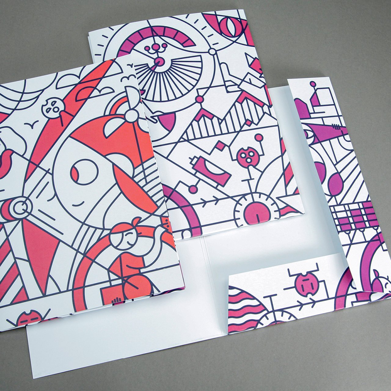 Das Velo in der Mitte entstand durch ein gemeinsames Gespräch mit den Ingenieuren und deren Freude am Velofahren. Es steht auch wunderbar für einen zirkulierenden und umweltverträglichen Energiekreislauf. Desweiteren spielen diverse visuelle Metaphern von Energieformen ineinander und lassen freie Interpretationen zu.