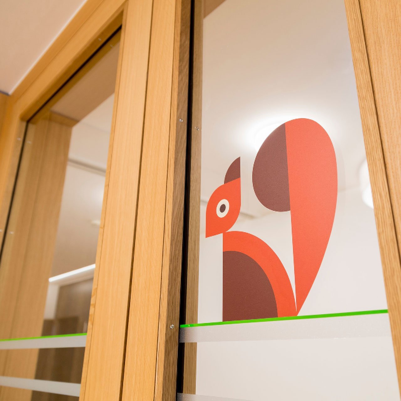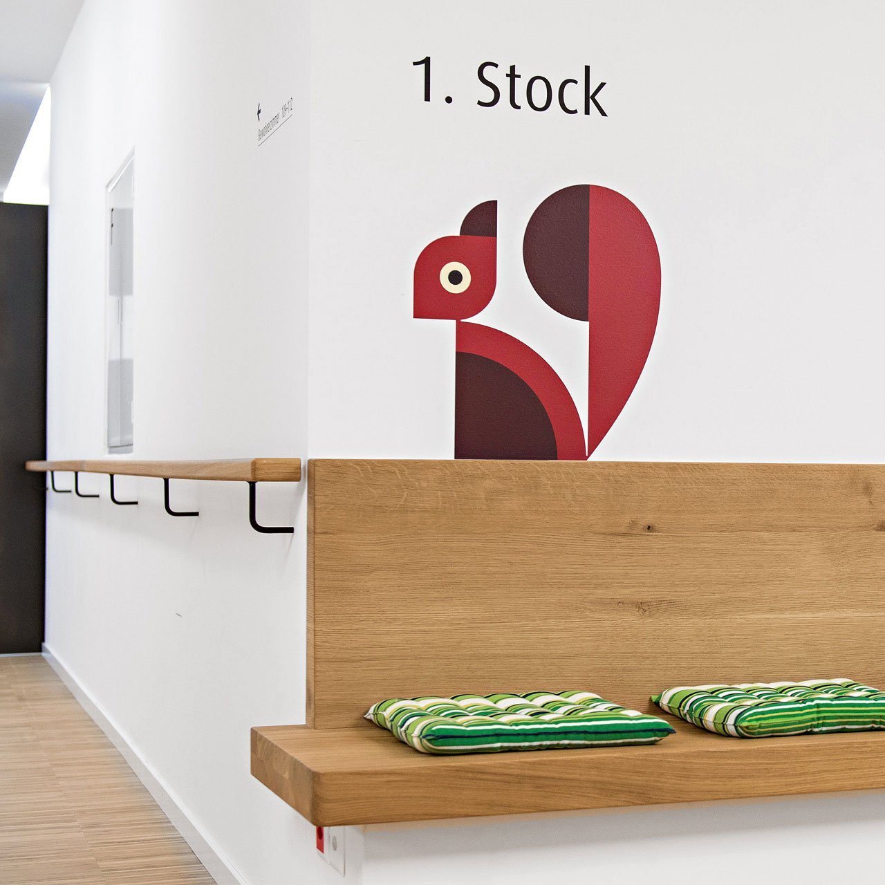 - Signaletik: Hausbeschriftung in beiden Gebäuden