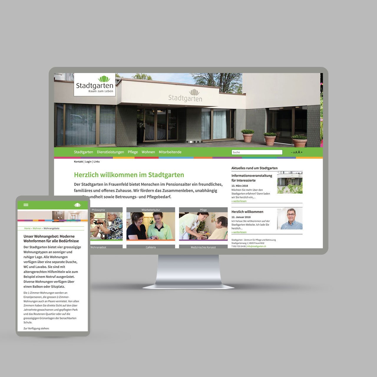 Seit über acht Jahren begleiten und beraten wir das Pflegezentrum Stadtgarten Frauenfeld in der Planung, Entwicklung und Realisation sämtlicher Kommunikations- und Marketingmassnahmen. Wir gewährleisten damit einen umfassenden, professionellen und ansprechenden Austausch nach innen und aussen.