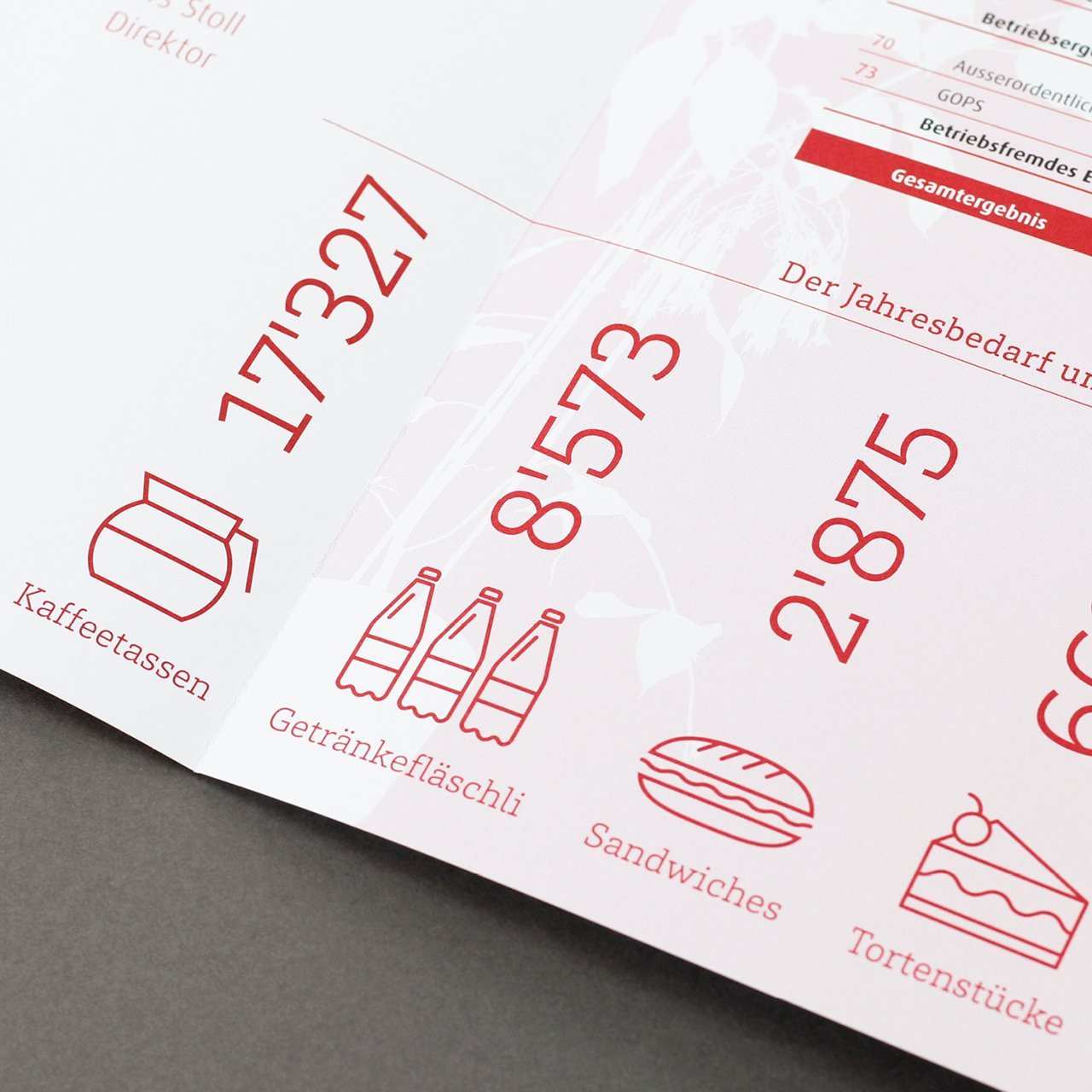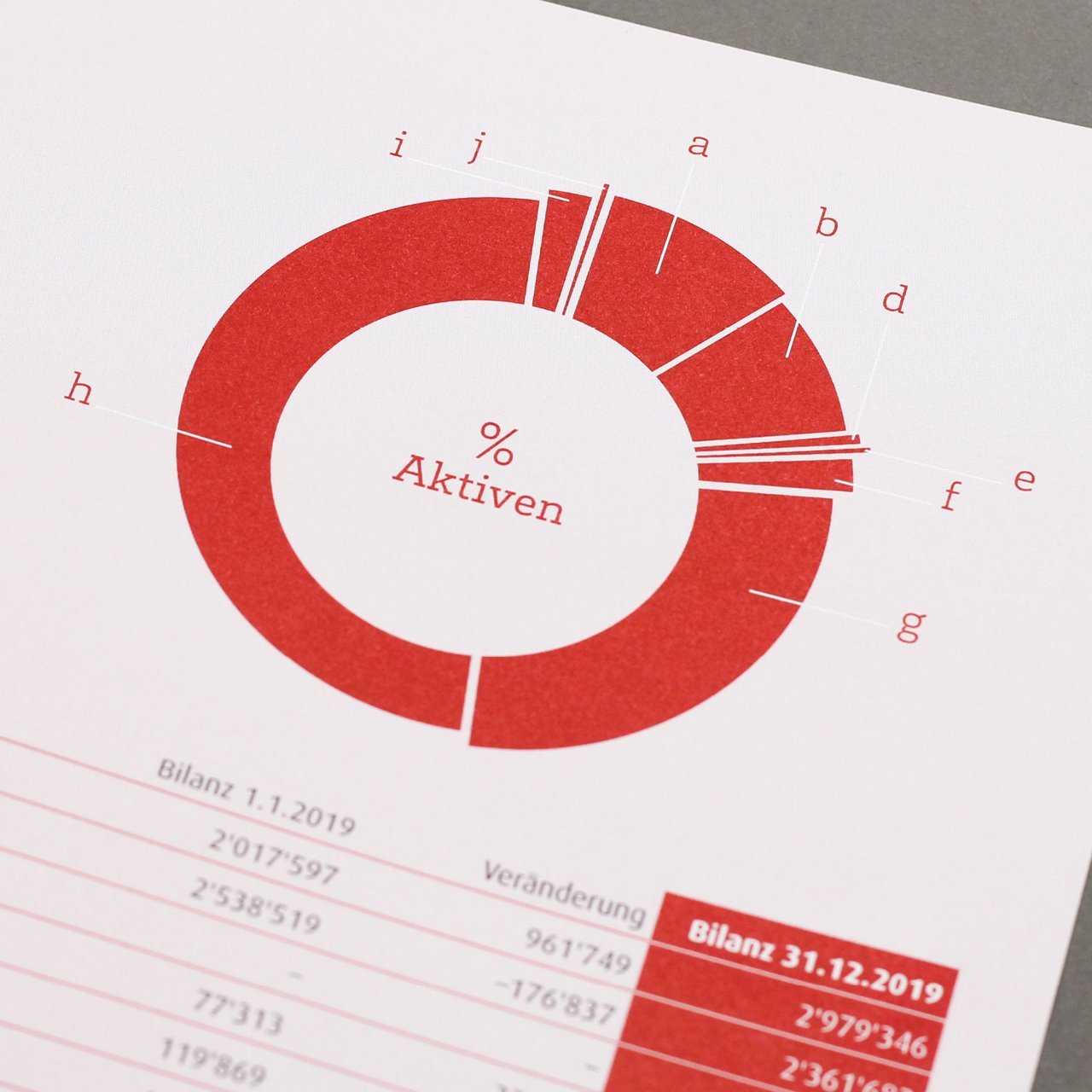 Eine tolle Gelegenheit, um vom üblichen Format wegzukommen und den Bericht typografisch und gestalterisch auf das Wesentliche spannend zu reduzieren. Herausgekommen ist eine Art Plan oder Karte, wo man auf einen Blick die relevanten Informationen finden kann. Gedruckt wurde nur zweifarbig, was die Intensität und die Einzigartigkeit dieses Jahresberichts noch mehr unterstreicht.