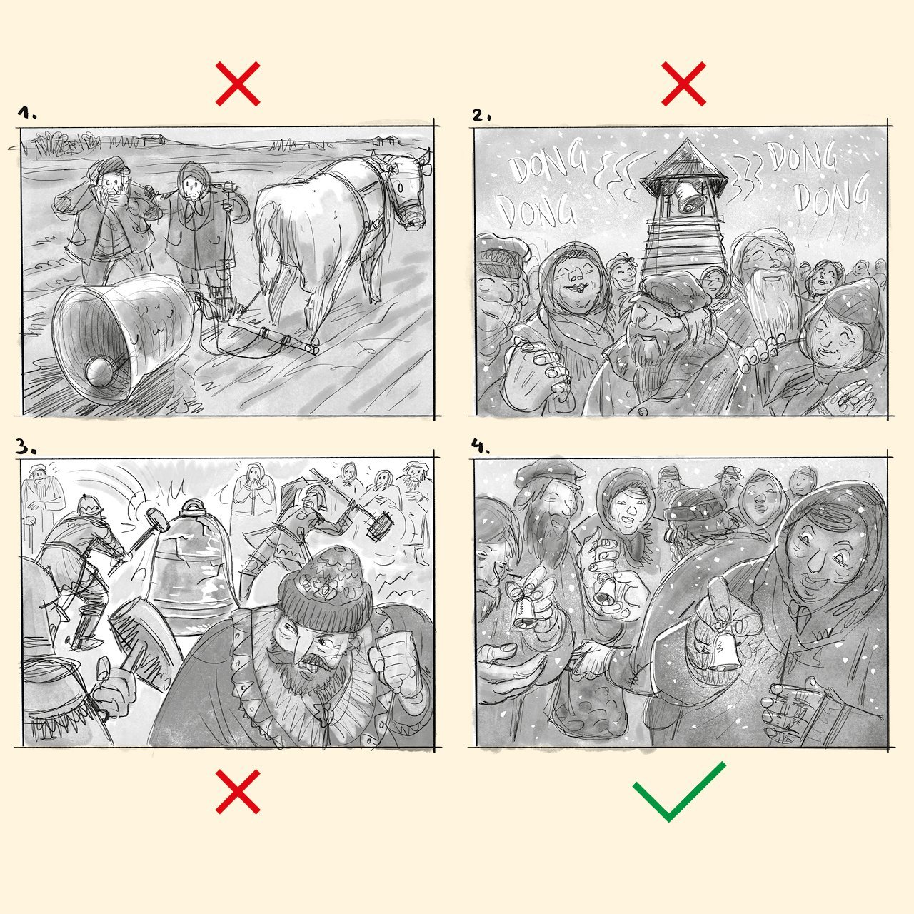 Zu jeder Weihnacht im Stadtgarten gehört unsere traditionell illustrierte Weihnachtskarte schon seit langem dazu. Die Geschichten drehen sich immer rund um die Weihnachts-Thematik. Dieses Mal ging es in die baltischen Gebiete. Vier Situationen, welche wesentliche Stellen der Geschichte skizzenhaft ausformulieren, dienten der Auswahl für die finale Umsetzung. Bei der finalen Umsetzung wurden noch kurz vor Druck inhaltliche Änderungswünsche umgesetzt. So kamen neue Personen dazu und andere wurden entfernt. Ein wesentlicher Vorteil einer Illustration, rasch und unkompliziert, aktualisieren zu können. Zu jeder Weihnacht im Stadtgarten gehört unsere traditionell illustrierte Weihnachtskarte schon seit langem dazu. Die Geschichten drehen sich immer rund um die Weihnachts-Thematik. Dieses Mal ging es in die baltischen Gebiete. Vier Situationen, welche wesentliche Stellen der Geschichte skizzenhaft ausformulieren, dienten der Auswahl für die finale Umsetzung. Bei der finalen Umsetzung wurden noch kurz vor Druck inhaltliche Änderungswünsche umgesetzt. So kamen neue Personen dazu und andere wurden entfernt. Ein wesentlicher Vorteil einer handgefertigten Illustration, welche rasch und nach Wunsch aktualisiert werden kann.