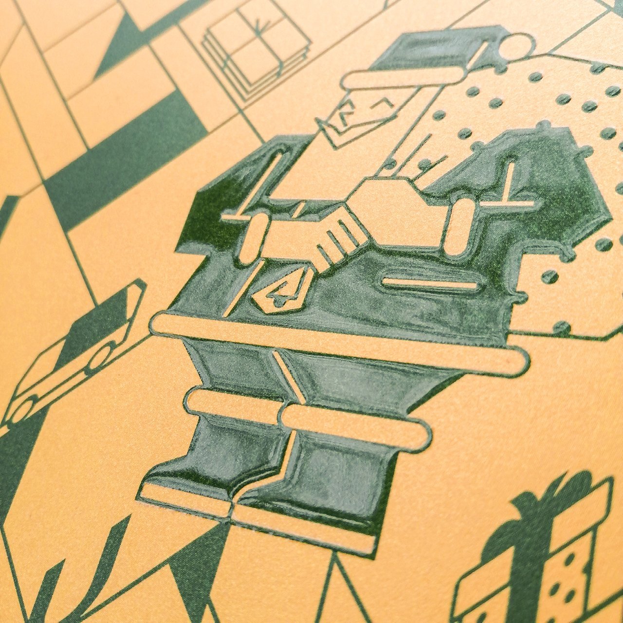 Ein besonderes Highlight ist die partiell lackierte Figur des Weihnachtsmanns – eine Weiterentwicklung des Designs vom letzten Jahr, bei dem der Weihnachtsbaum im Mittelpunkt stand. Die Veredelung verleiht der Karte eine hochwertige Haptik und einen festlichen Akzent, der die Botschaft des Jahreswechsels stilvoll unterstreicht.