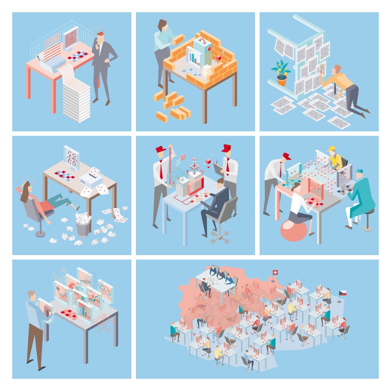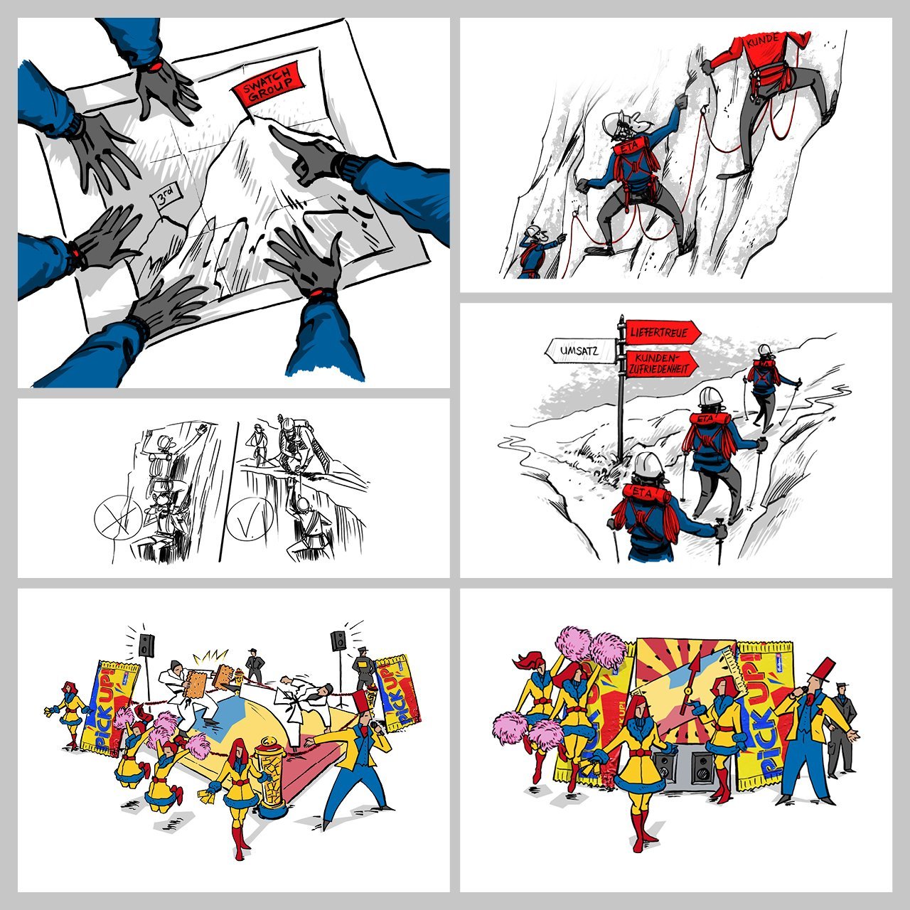 Wenn der Mensch involviert ist, wenn es um komplexe Sachverhalte geht oder um banale Alltagssituationen, ist eine Illustration oft erste Wahl. Nebst vielen Vorteilen wie der Schnelligkeit ist die prägnante Visualisierung oft komplexer Themen immer noch unübertroffen.