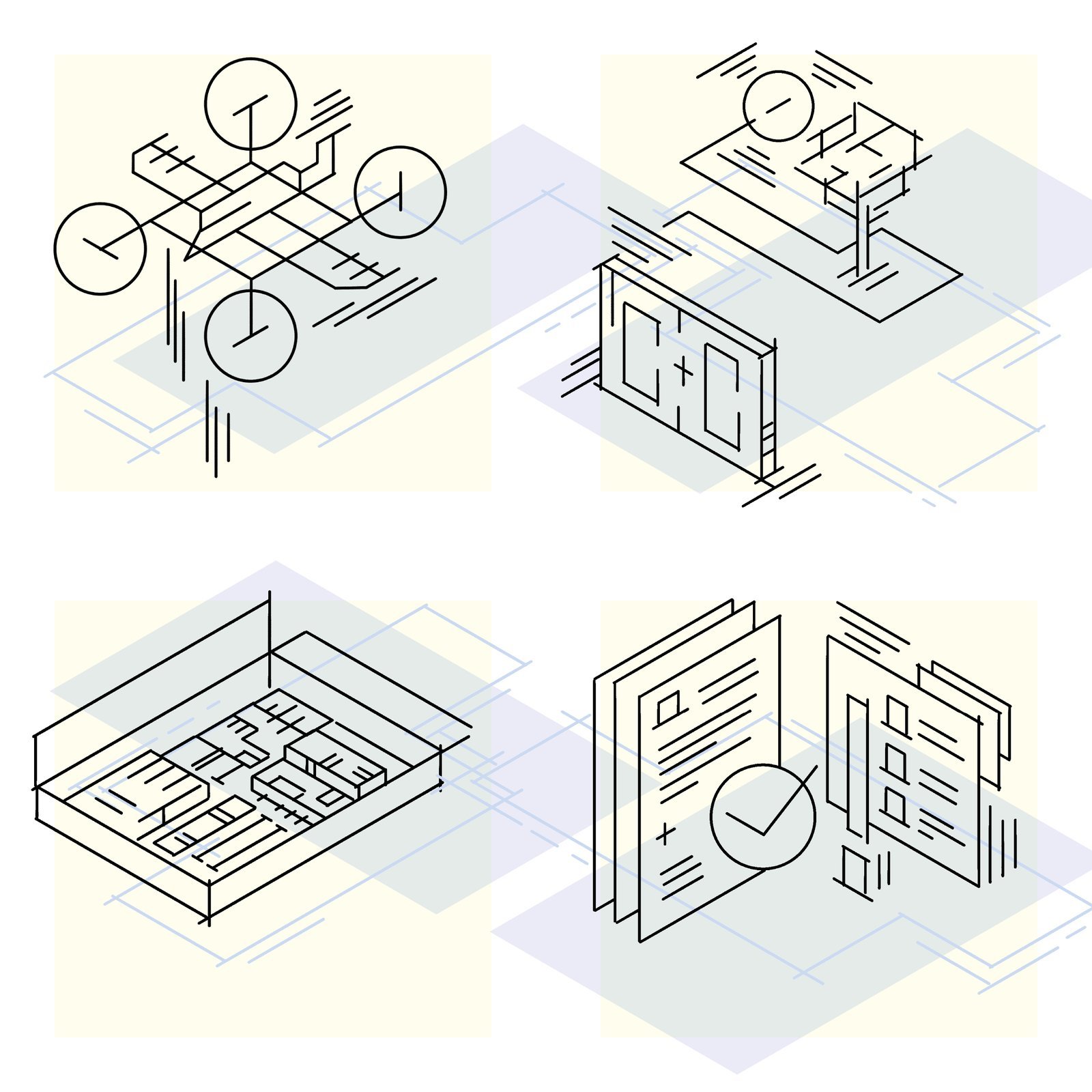 All diese Vorteile haben wir mit linearen und der Techniksprache angelehnten Illustrationen visualisiert, um das ganze Angebot auf einen Blick zu erfassen. Die Illustrationen sind offen und somit responisve für verschiedene Medien aufgebaut.